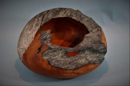 This is a very rare piece, a burr that has grown entirely around a branch, Freeman has hollowed it out and it is a beautiful specimen piece.